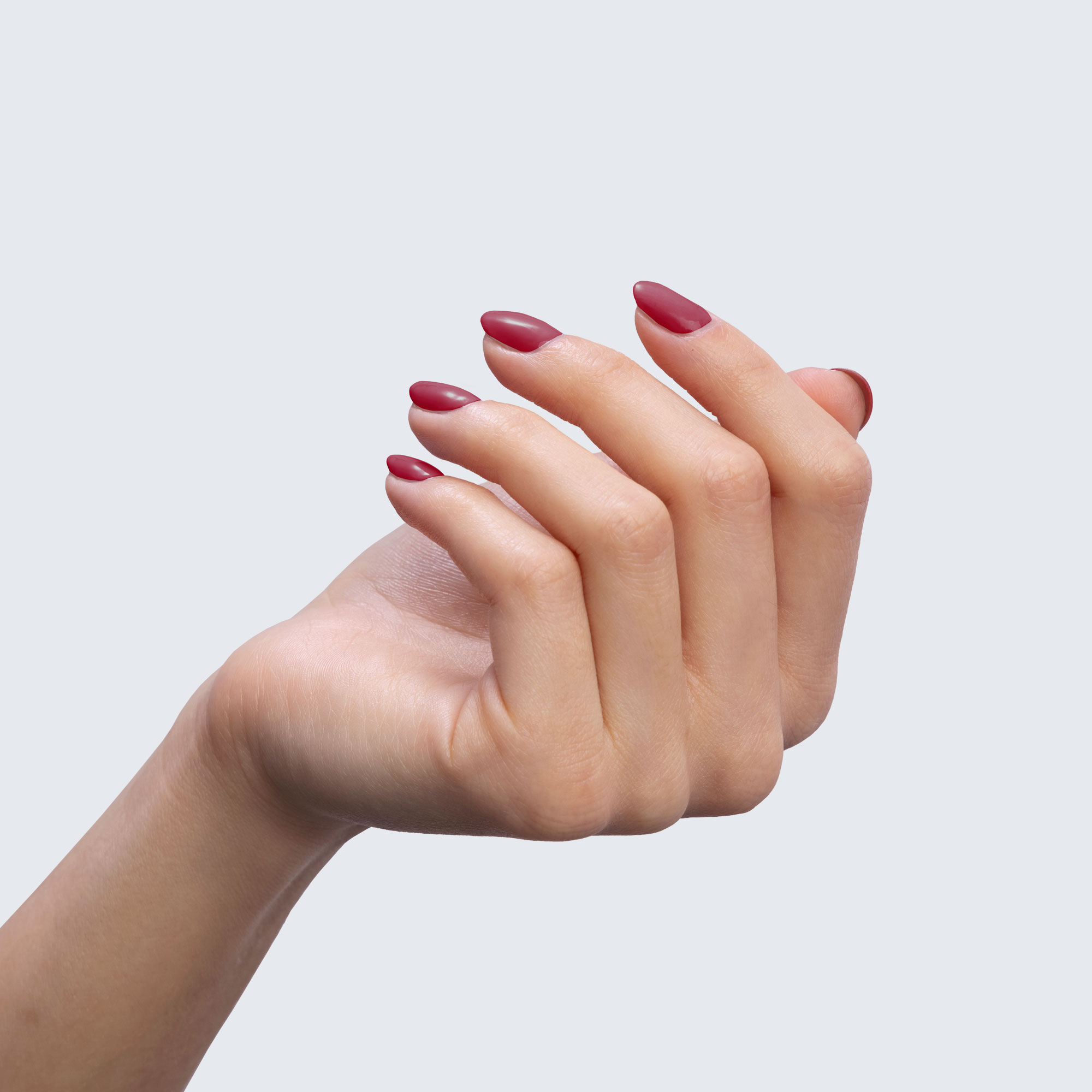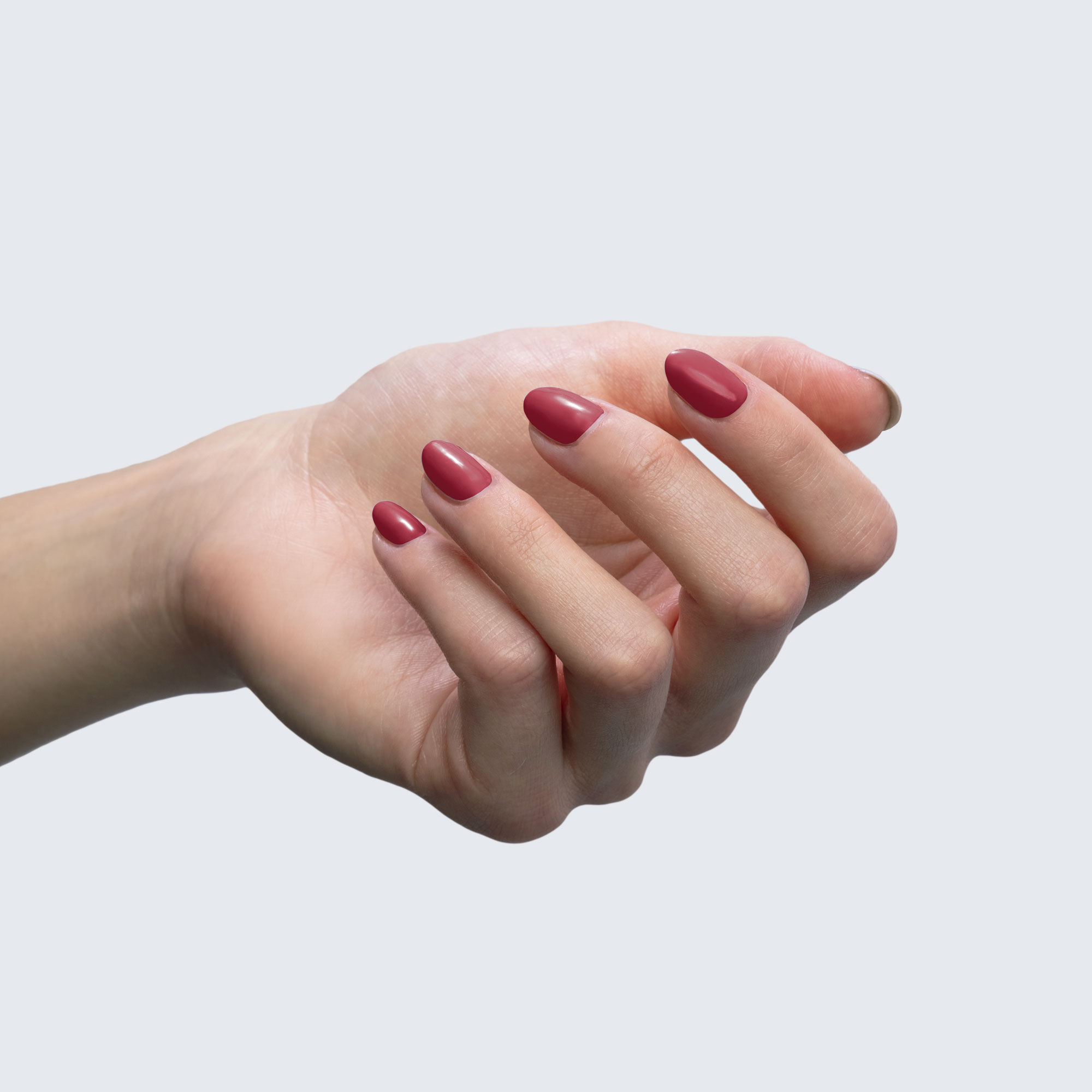 True burgundy. Dark. Opaque. Warm undertone.